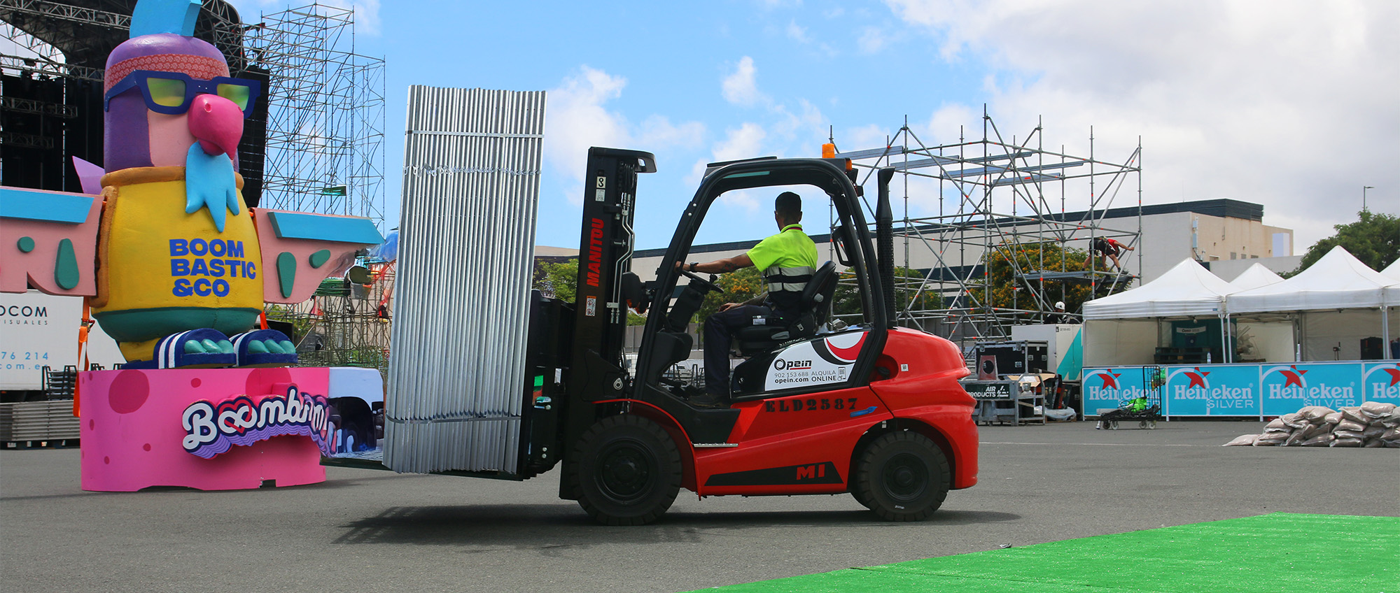 Las carretillas o los manipuladores telescópicos y herramientas de manipulación de carga facilitan el montaje y desmontaje de las infraestructuras (también llamadas infras) de un evento como el escenario, transporte de mercancías, alimentos y bebidas así como los equipos de música y de sonido.