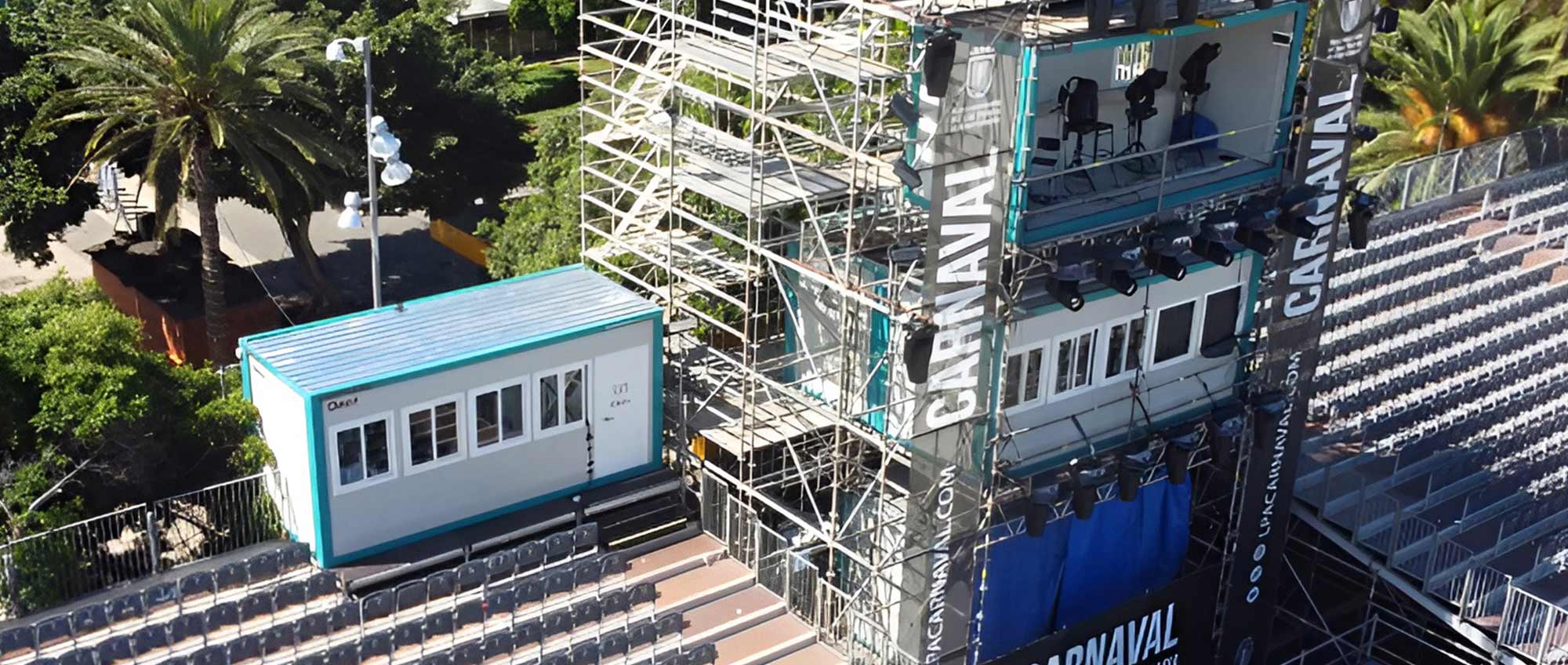 Los taquilleros, oficinas, vestuarios, camerinos del backstage y el resto instalaciones temporales son soluciones para eventos esenciales que pertenecen a la categoría de edificación modular.