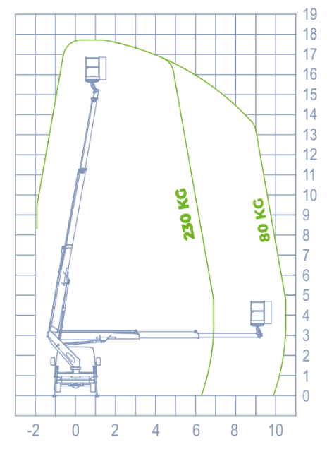 Plataforma telescópica sobre camión diésel 3500kg mma socage (dpf+adblue), 18m altura de trabajo y 10,5m alcance horizontal máximo, 230kg capacidad de carga para dos operarios, estabilización automática para mayor seguridad y correcta estabilización, estabilizadores verticales (h+h), y 2 grados inclinación máxima admisible.