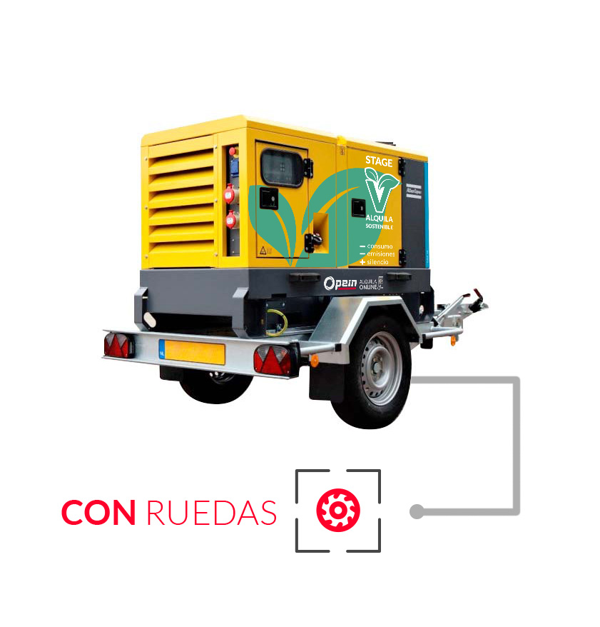 Grupo electrogeno diesel stv 20 kva, deposito extra-capacidad de combustible 250l para 48 h, motor eco bajo consumo, movil con ruedas y cuadro completo ip67movil con ruedas