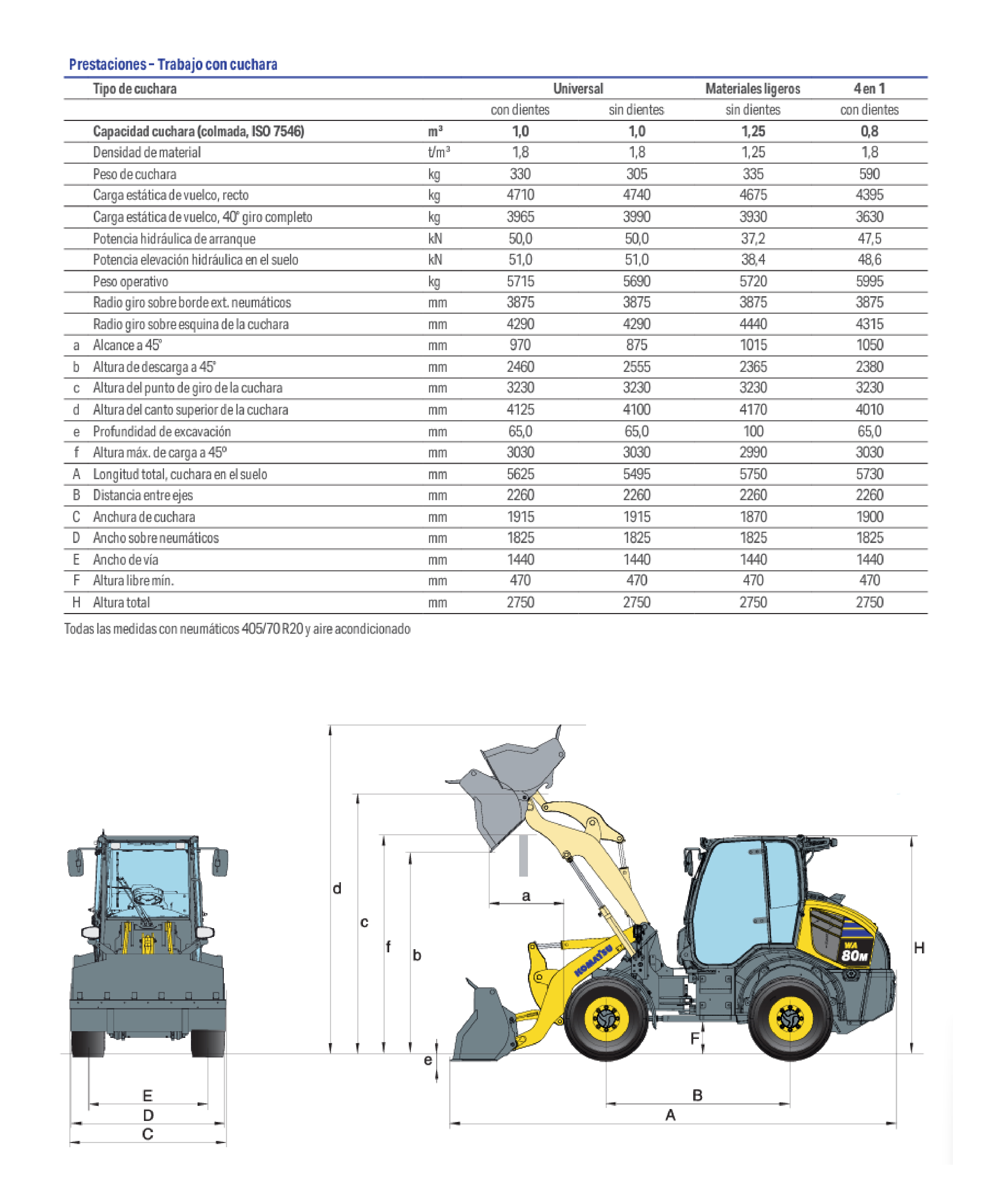 Minicargadora articulada compacta de ruedas y chasis con eje oscilante con motor diesel, 1,0m3-1500kg capacidad nominal de carga, neumaticos con sistema antipinchazos, cabina cerrada con aire acondicionado rops/fops con excelente visibilidad y asiento ajustable, aceleradores en pie y control de movimientos en joystick multifuncion, pedal de marcha lenta, linea auxiliar hidraulica 64,0l/min, se suministra con cucharon de ancho 1,91m, sistema de flotacion de cucharon durante traslado, sistema de montaje estandar para implementos, longitud 5,64m, ancho 1,88m, altura 2,72m, matriculacion y alumbrado segun codigo de circulacion, luces de trabajo delanteras y espejos retrovisores, 4,49m radio de giro con cucharon y aprox. 6000kg peso
